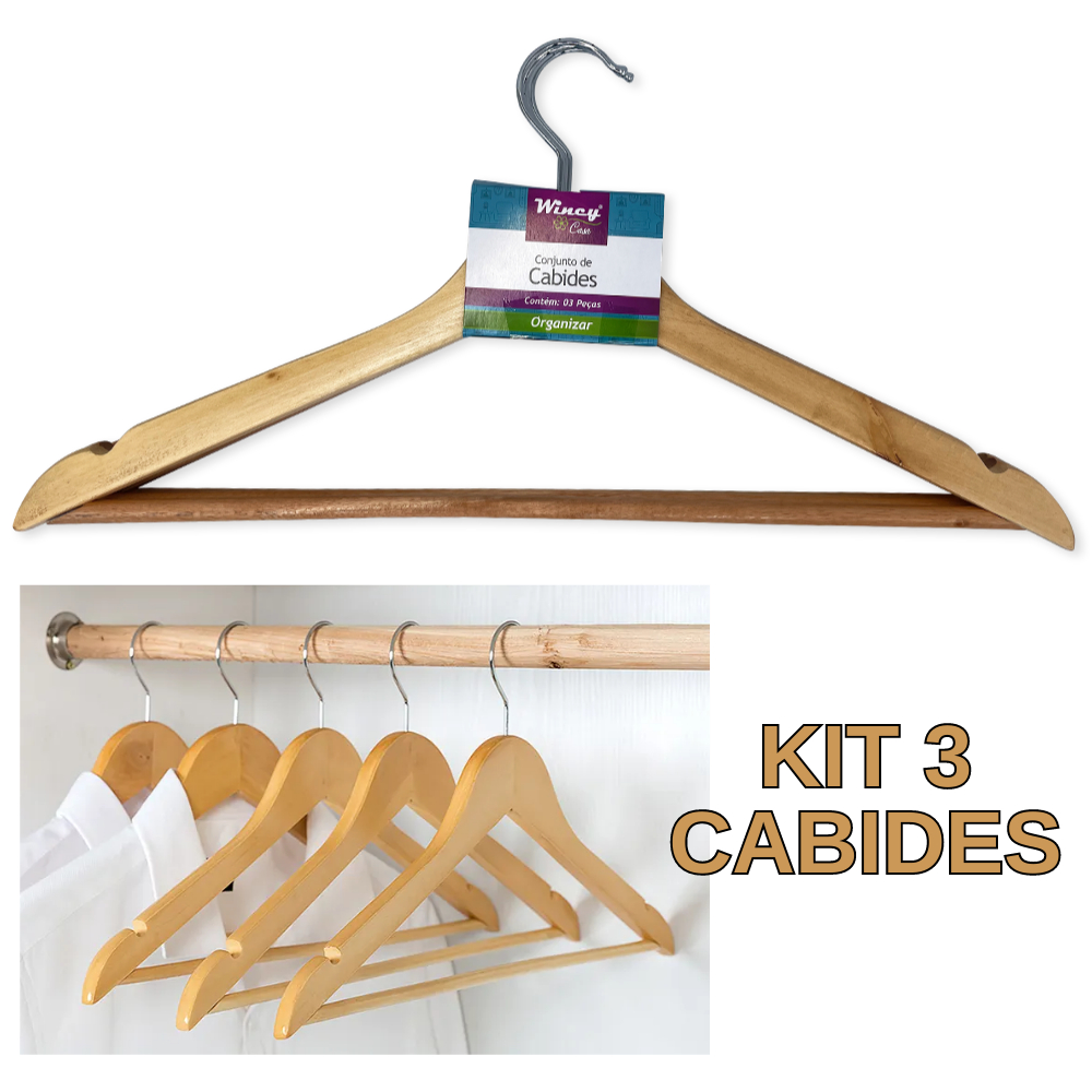 Kit 3 Cabides De Madeira Marfim com Verniz Quarto Roupa