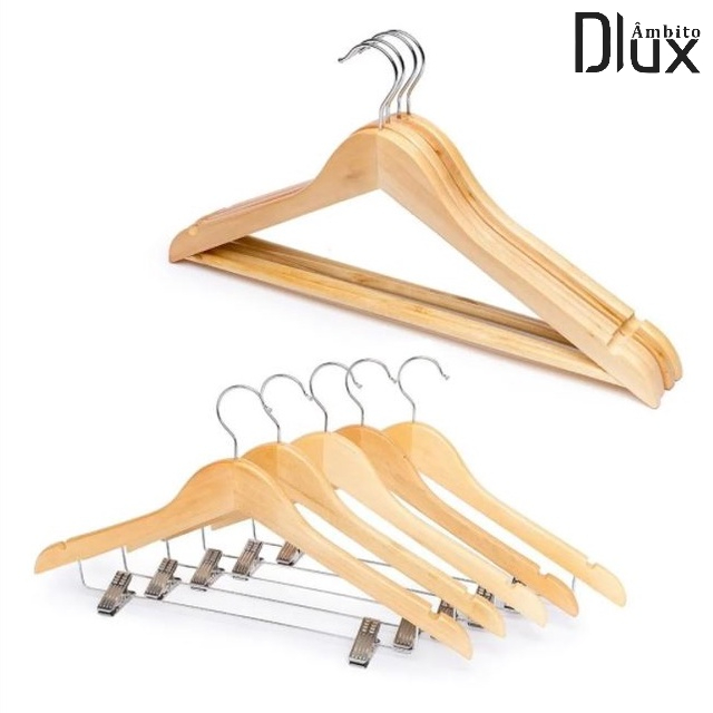 Kit 10 Cabides De Madeira Marfim De Presilha Organizador Roupa Saia Calça Cromado Para Loja de Roupa