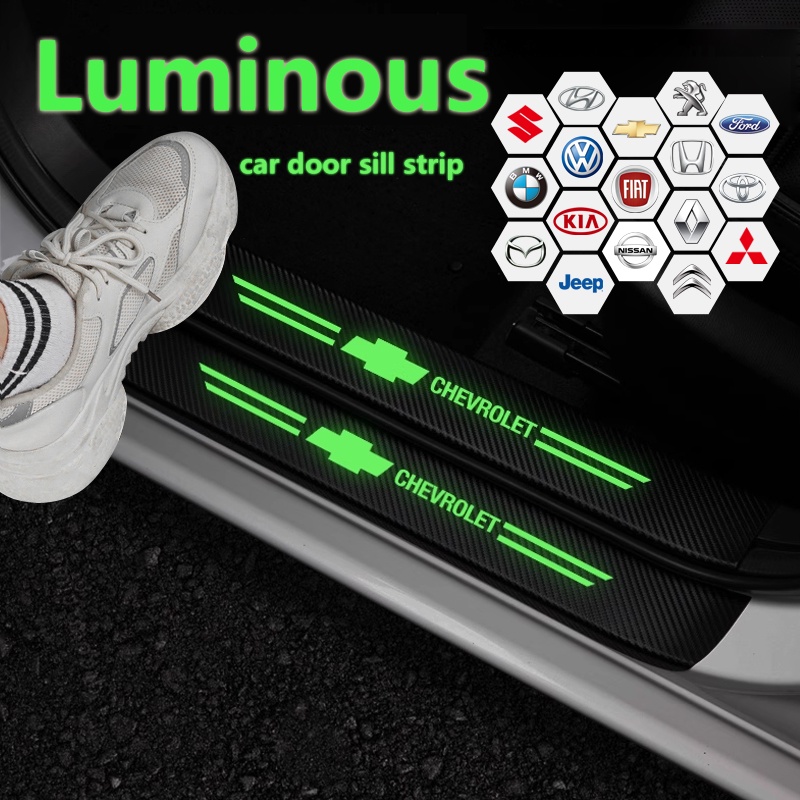 4Pcs Fita Adesiva Protetora Da Soleira Porta Do Carro Luminosa De Fibra De Carbono Para