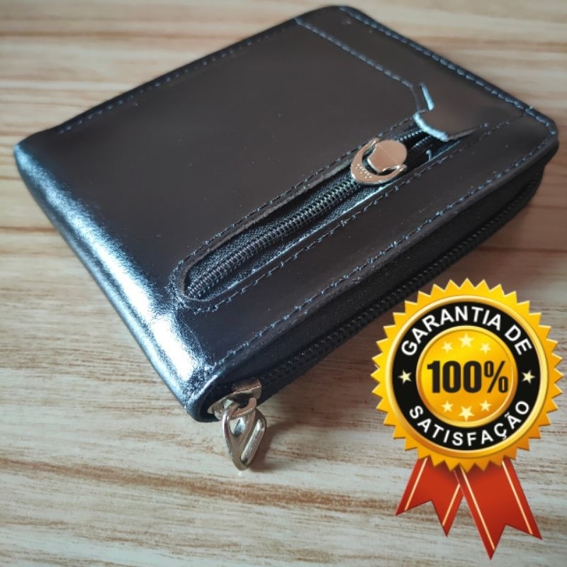 Carteira de Couro Legítimo Masculina com Ziper 9 Porta Cartão Moedas CNH Moda Original