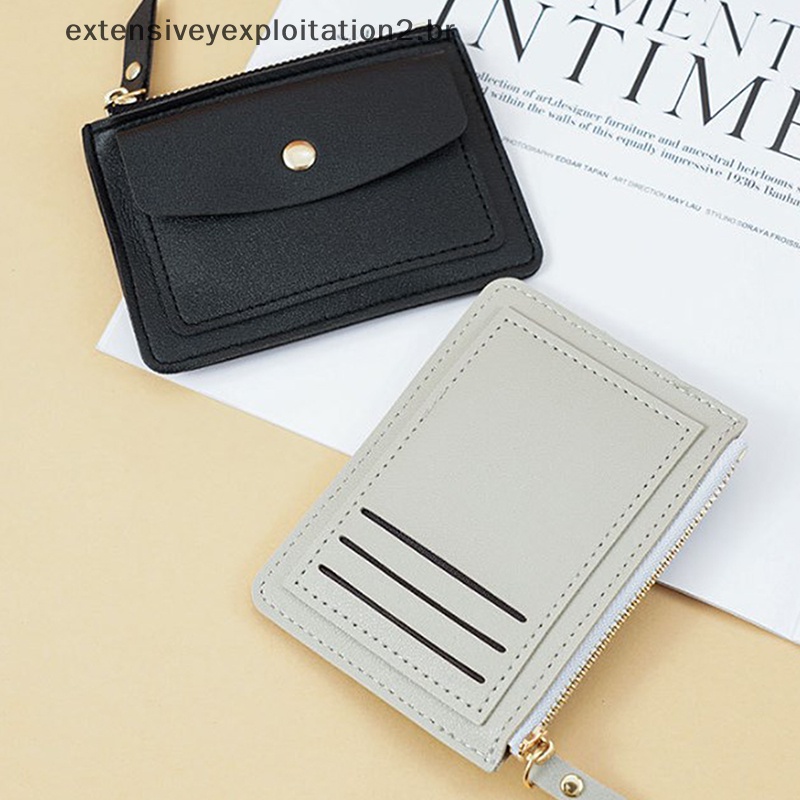 Mini carteira de couro PU masculina ultrafina moda pequena carteira/porta-moedas com porta-cartões zíper de rédito
