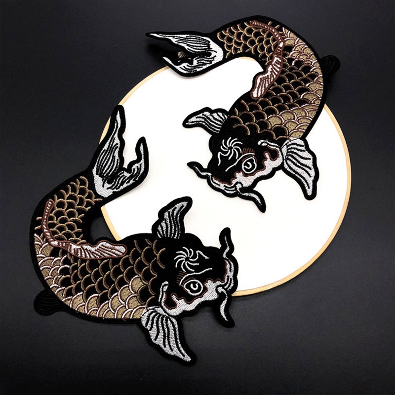 1 Par De Carpa Peixe Patch Ferro Bordado Em Remendos Para Vestuário DIY Acessórios Decoração