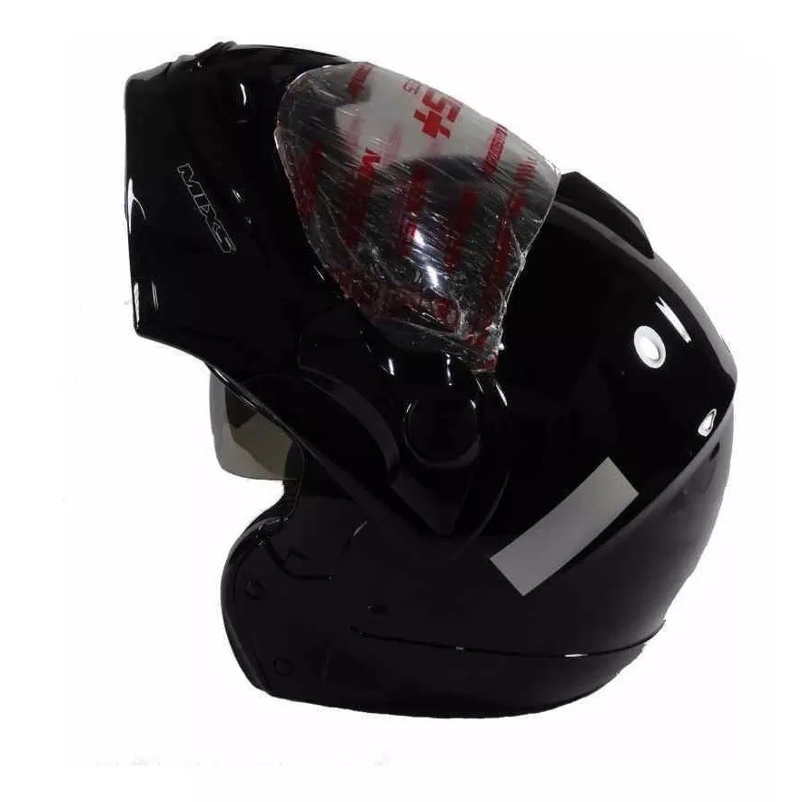 Capacete Moto Mixs Captiva Preto Brilhante Articulado Escamoteável Robocop com Viseira interna fumê