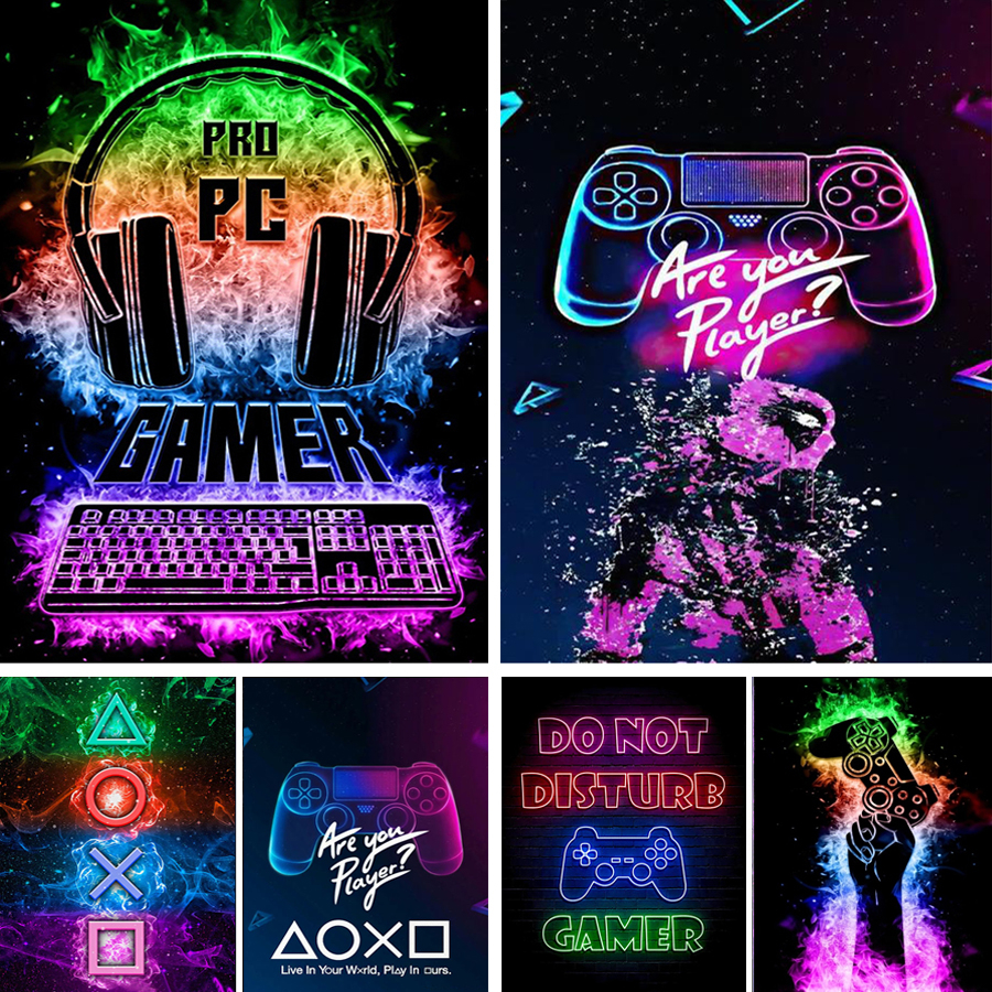 Quadro Jogo para Meninos, Mosaico Ponto Cruz, Decoração do Quarto Gamer, Playstation DIY, Gaming Bordado Presente, Meninos
