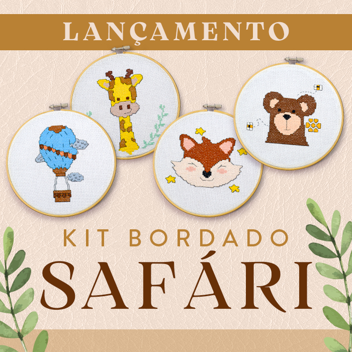 Kit Bordado Ponto Cruz Safári Círculo Crochê Tricô Artesanato