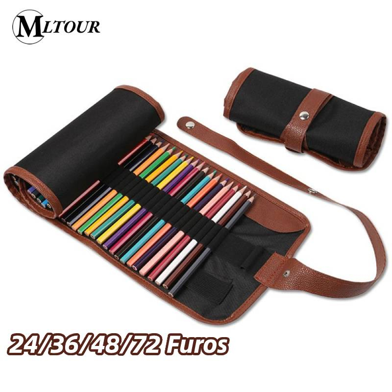 24/36/48/72 Furos Estojo Lápis De Portátil Grande Capacidade Roll Up Imprensa Fixadores Saco De Armazenamento Para O Estudante E Artista