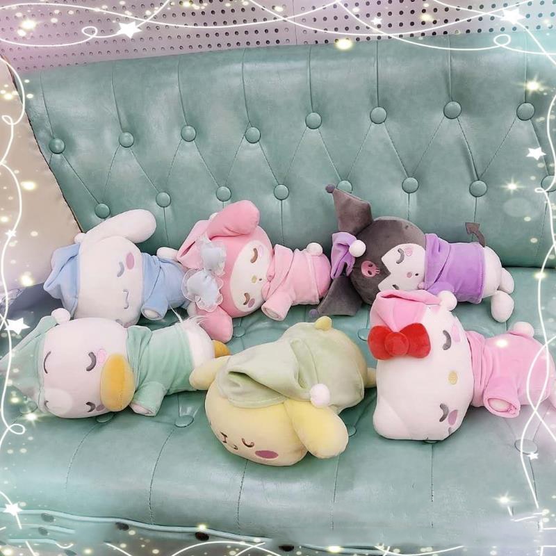 20 cm De Dormir Em Prone Posição Minha Melody Kuromi Nightcap Cinnamoroll Cão De Pelúcia Boneca De Pelúcia Anime Brinquedos De Pelúcia Presente Da Menina