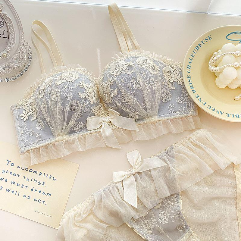 Conjunto De Roupas Íntimas Calcinha De Renda Copa Fina Sem Fio Lingerie Feminina Lolita Style Triangle Cup Bralette