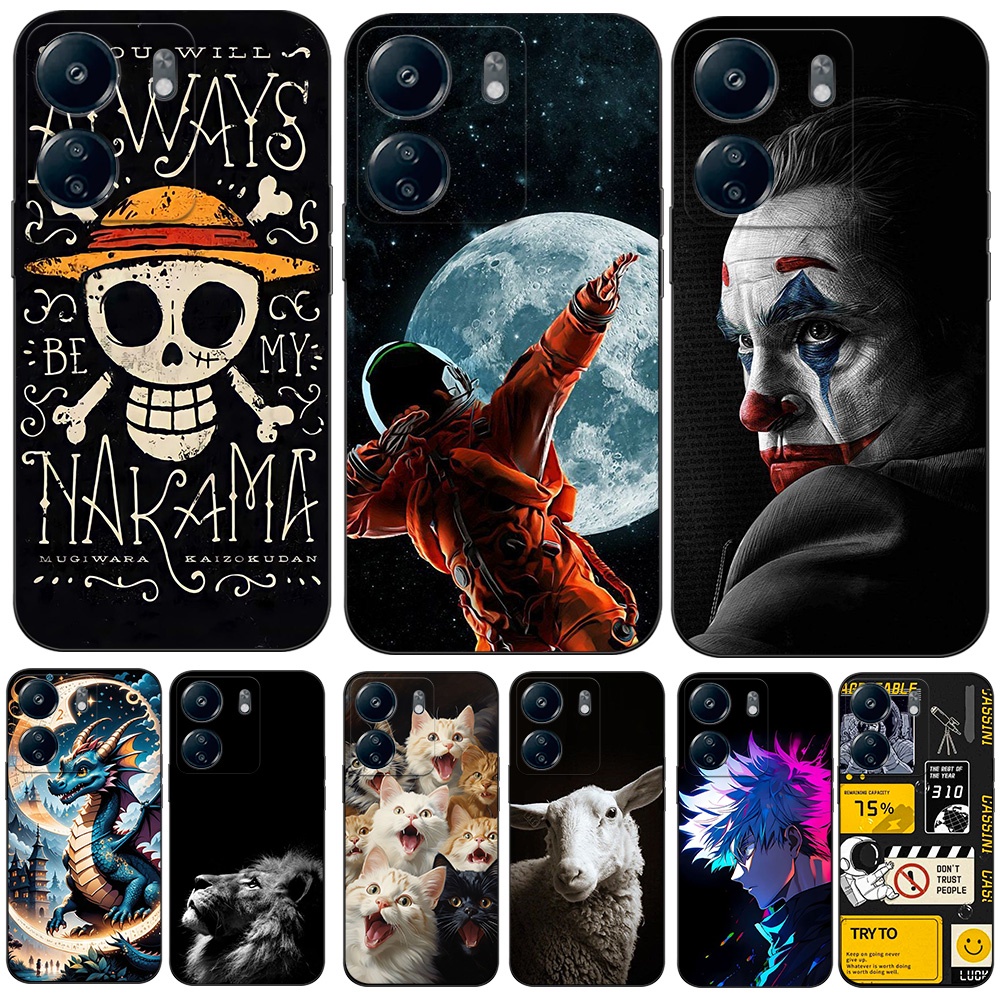 Para xiaomi Redmi 13C POCO C65 Capa Traseira Do Telefone Silicone Macio Protetor De Preto Tpu Case Dragão De Ovelha Da Moda