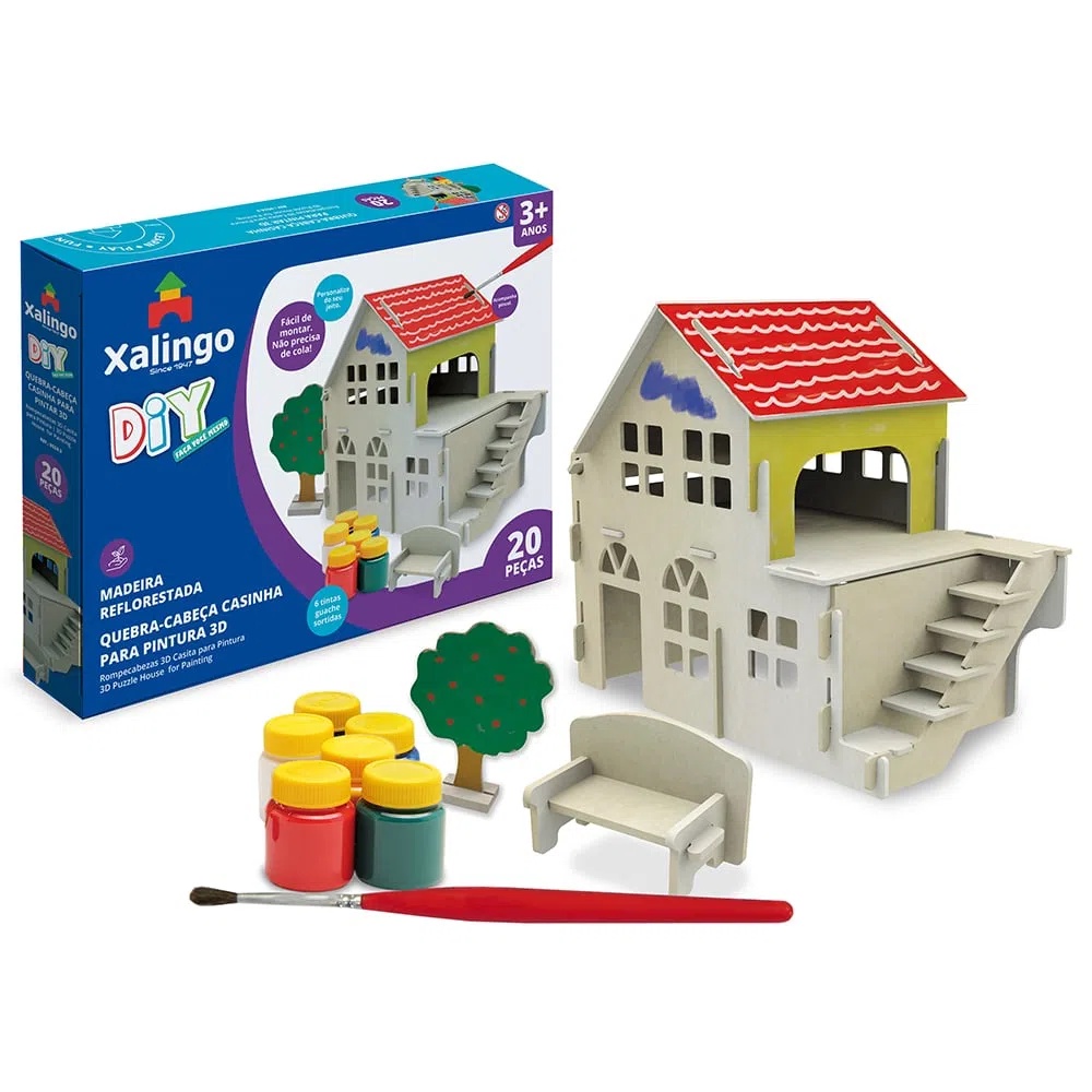 Quebra-Cabeça 3D Casinha Para Pintura DIY com Kit de Tintas Xalingo