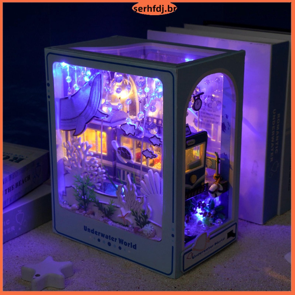 Kit De Quebra-Cabeça De Livros De Bricolagem 3D Puzzle Bookshelf Insert Decor Com Luz LED Modelo Dollhouse Miniatura SHOPSBC4876