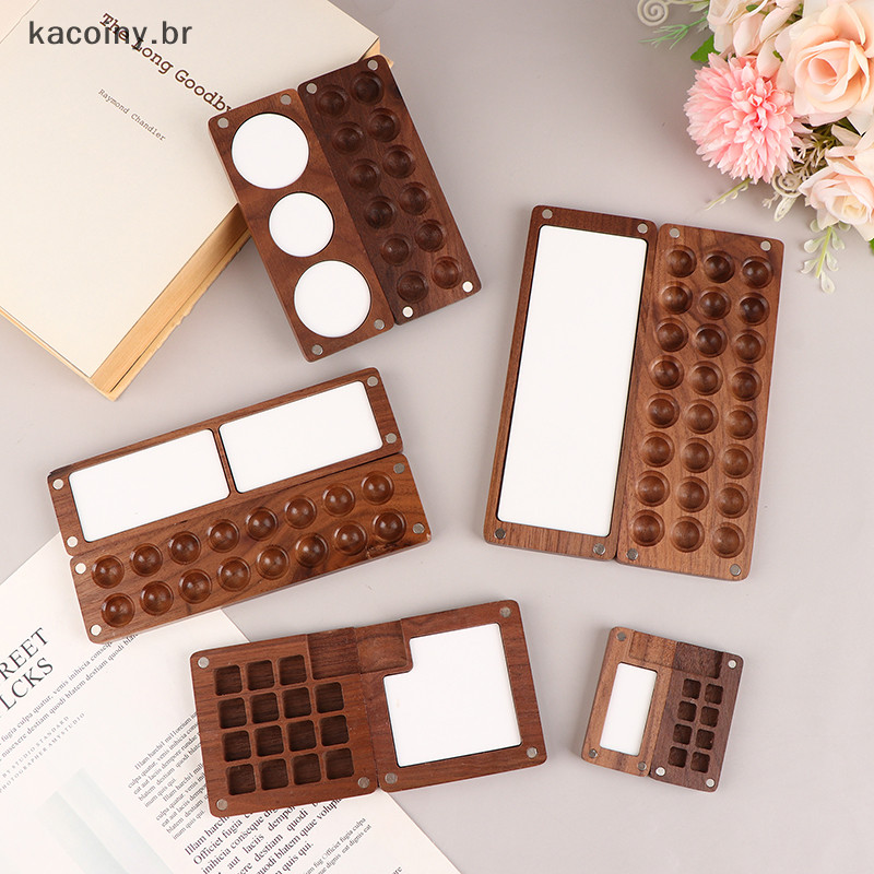 kainy Portable Travel Paleta De Pintura Em Aquarela Feita À Mão A Óleo Caixa Vazia Mini De Nogueira Preta BR