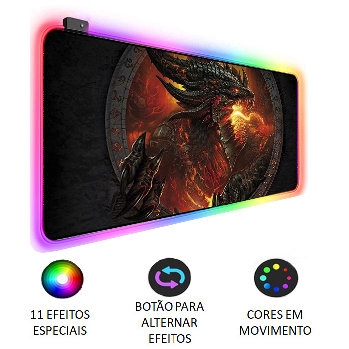 Mouse Pad Gamer Jogo Borda Led Rgb Grande 80x30cm Dragão