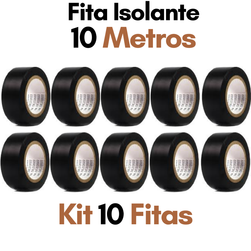 Kit 10 Fita Isolante 5 10 20 Metros Antichama 5m 10m 20m Pacote 10 Unidades Rolo Fitas Preta Atacado Disponível 3 Tamanhos
