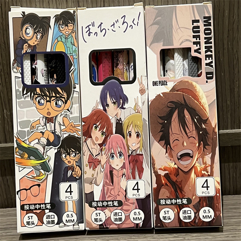 4 Pçs/set Dos Desenhos Animados Anime Bonito Conan ONE PIECE Escrita Caneta Neutra Tinta Preta Estudante Papelaria