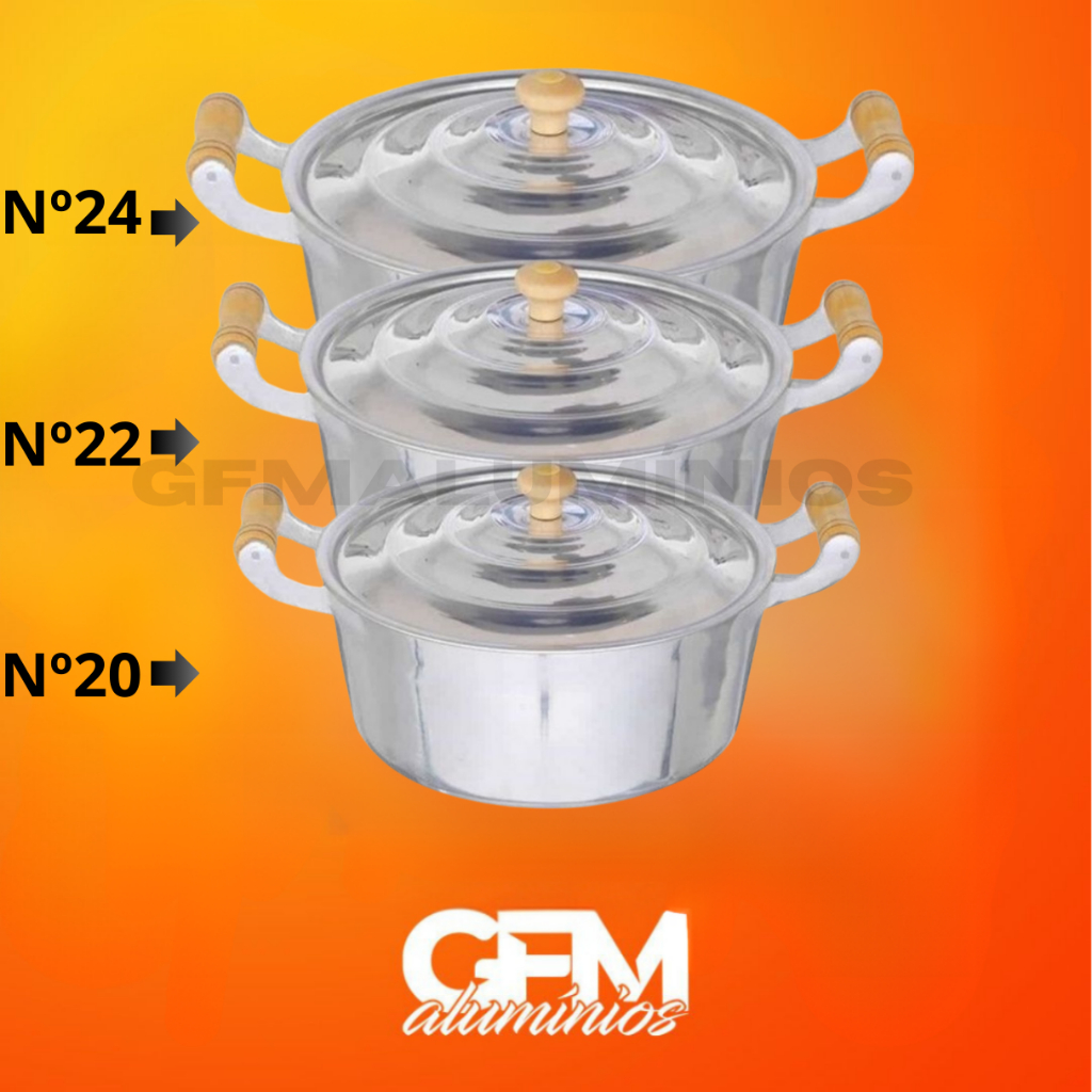 Jogo 3 Caldeirão N 20 22 24 Panela Alumínio Grande Linha Cozinha Industrial Hotel Restaurantes