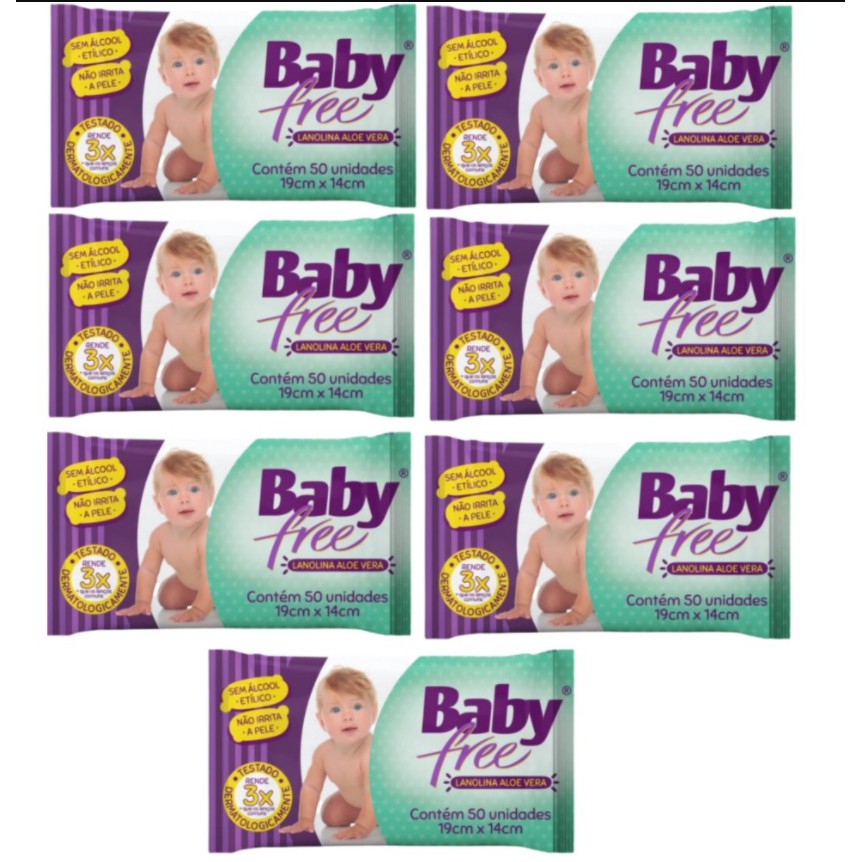 Kit com 7 Lenços Umedecidos Baby Free Toalha Umedecida Qualybless 7 Pacotes com 50 unidades (Total: 350 lenços)