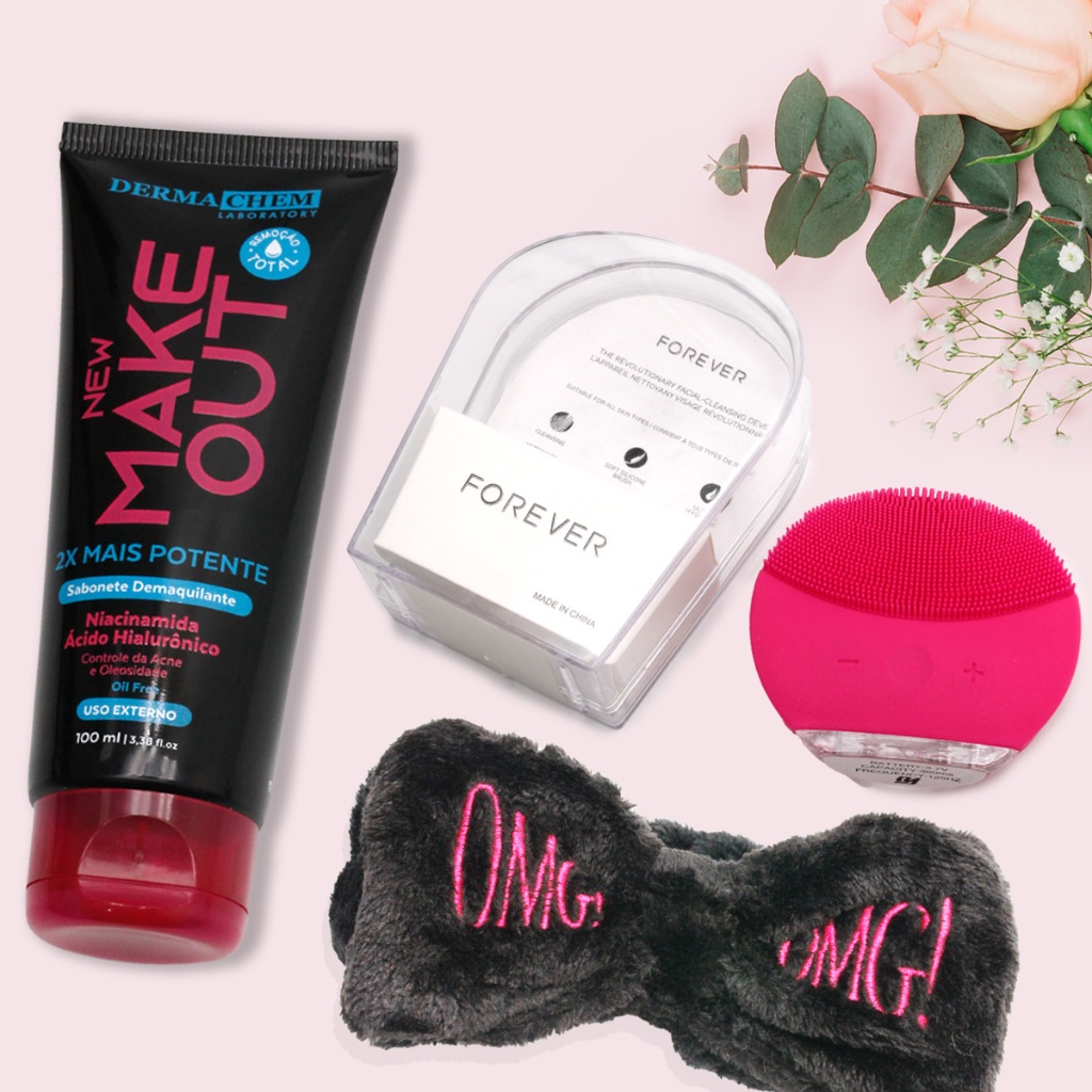 Sabonete de Limpeza Facial com Faixa de Maquiagem Skin Care mais Esponja Elétrica Forever com Cabo SB Dermachem