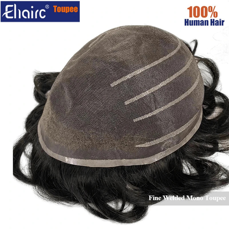 Fine Soldado Mono Toupee Homens Natural Cabelo Humano Toupee Homens Respirável Cabelo Masculino Prótese Capilar 7 "Peruca Masculina Homens Peruca H1BX