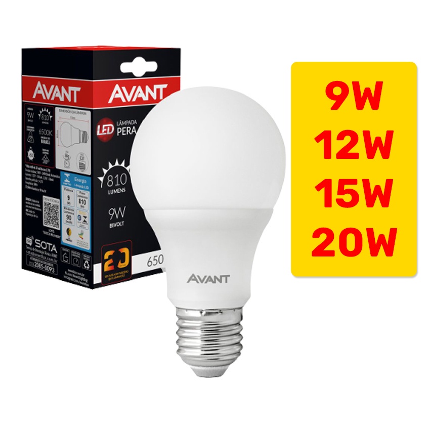 Lâmpada de LED 9W, 12W, 15W e 20W Bulbo Bivolt Econômica 6500K Branca Fria Avant