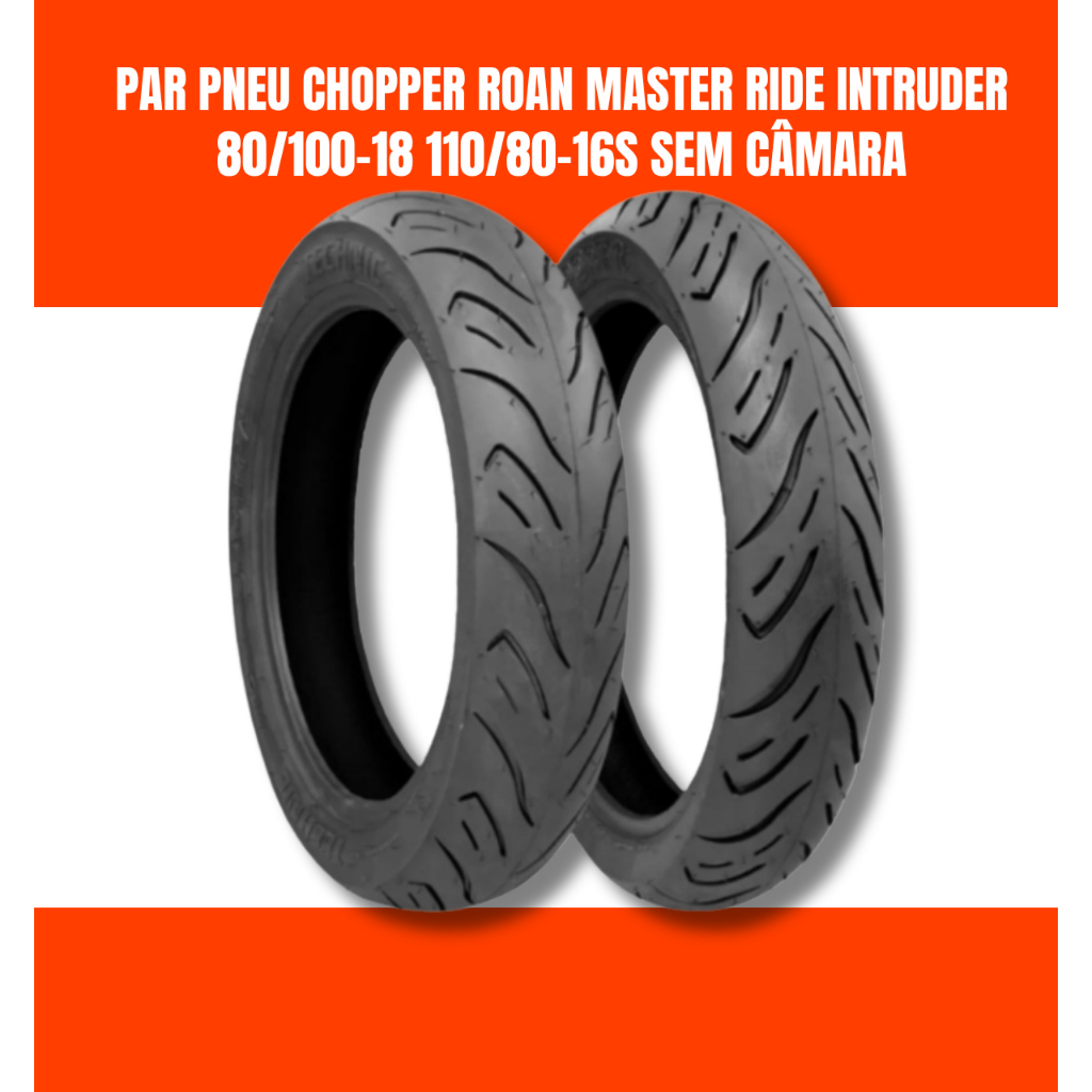 Par Pneu Chopper Road Master Ride Intruder 80/100-18 110/80-16 Sem Câmara