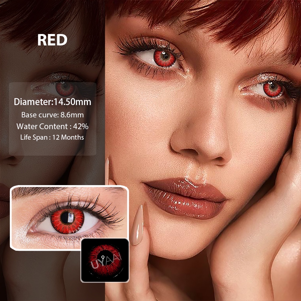 Uyaai 1 Par Cosplay Cor Lentes De Contato Para Os Olhos Anime Acessórios Lentes De Contato Dia Das Bruxas Vermelho Branco Lentes Lentes Anime