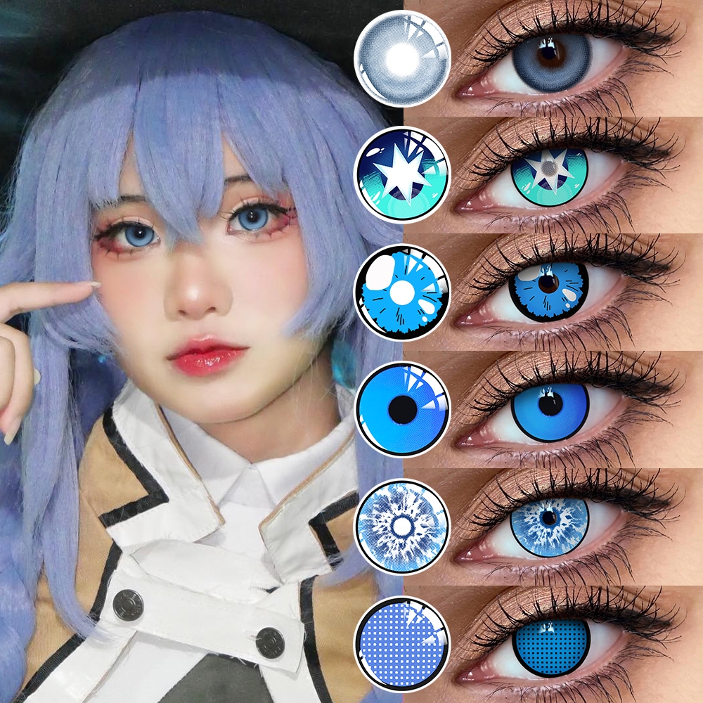 UYAAI 1 Par De Cosméticos De Contato Coloridos Para O Halloween Cosplay Lentes Adequados Maquiagem Série Azul 14,5mm