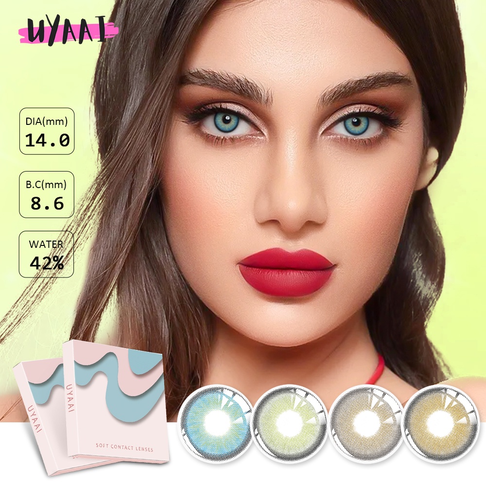 2022 Novos Desenhos UYAAI 2pçs/1 Par Lentes De Contato Coloridas Natural Para Contatos Olhos Meninas Lágrima Verde