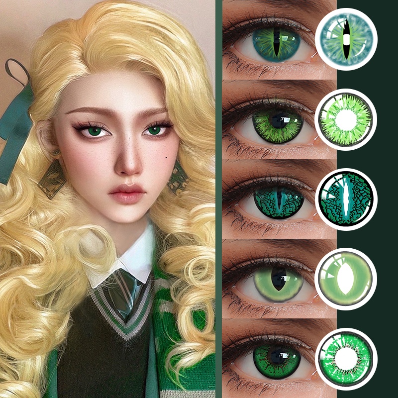 UYAAI 2 Pcs = 1 Par Lentes De Contato Anual Coloridas Anime Cosplay Verde Macias Maquiagem 14,0mm 14,2mm 14,5mm