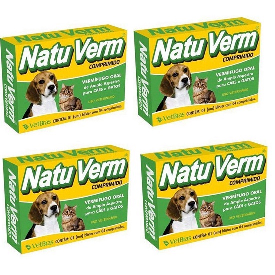 Kit 4 Natu Verm Comprimido Vermifugo P/ Cães e Gatos Vetbras