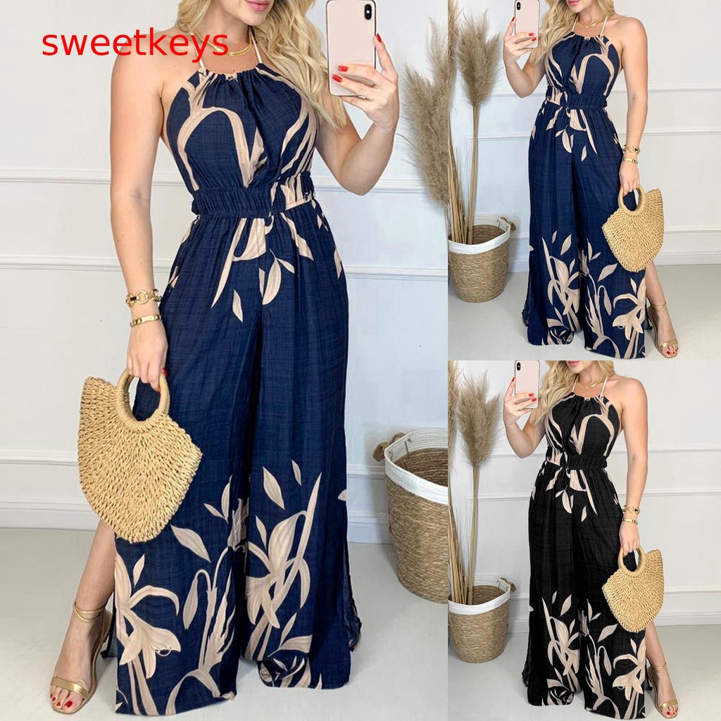 Sek Women Casual Diário De Verão V Sem Mangas Com Pescoço Em Cabresto Floral De Folha De Impressão Costas