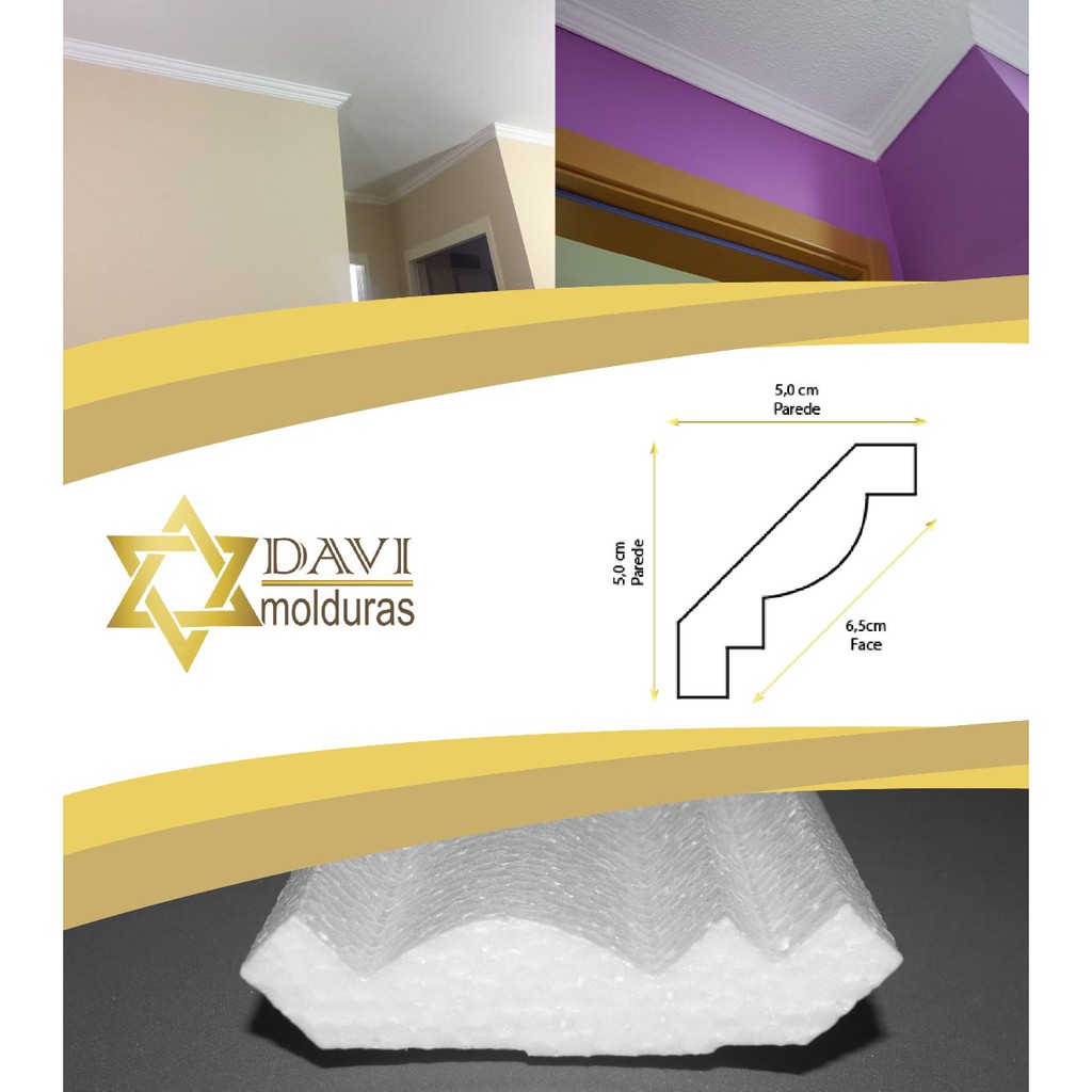 Moldura C/ ACABAMENTO COM MASSA (Kit 6 Mts) -Rodateto Sanca De Isopor Modelo 2 Direto da fábrica