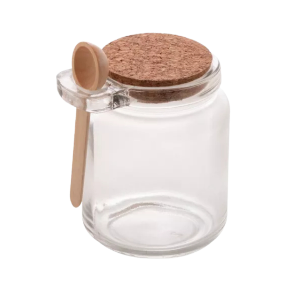 Pote De Vidro Com Colher De Madeira E Tampa De Rolha - 200ml