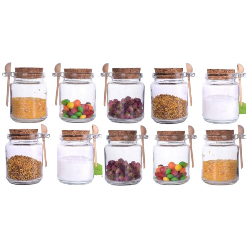 Kit 10 Frascos De Vidro porta condimento Com Rolha E Colher Porta Tempero