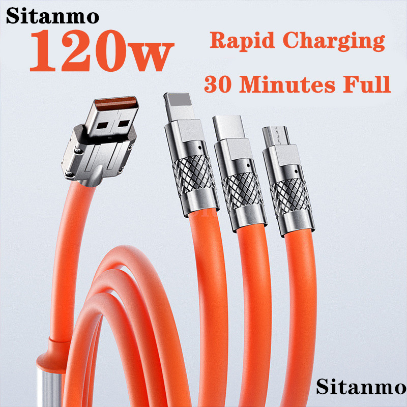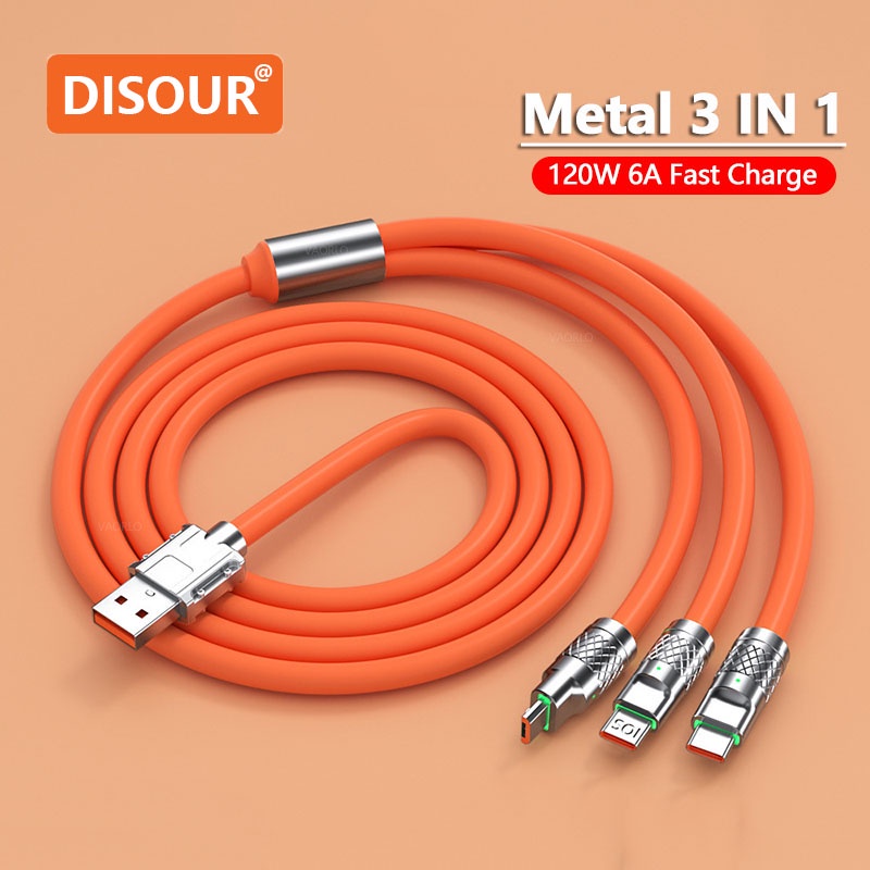 Cabo De Carregamento 3 Em 1 120W 6A Tipo C Líquido De Silicone Micro USB Multi Portas Super Carregador Rápido Cabo