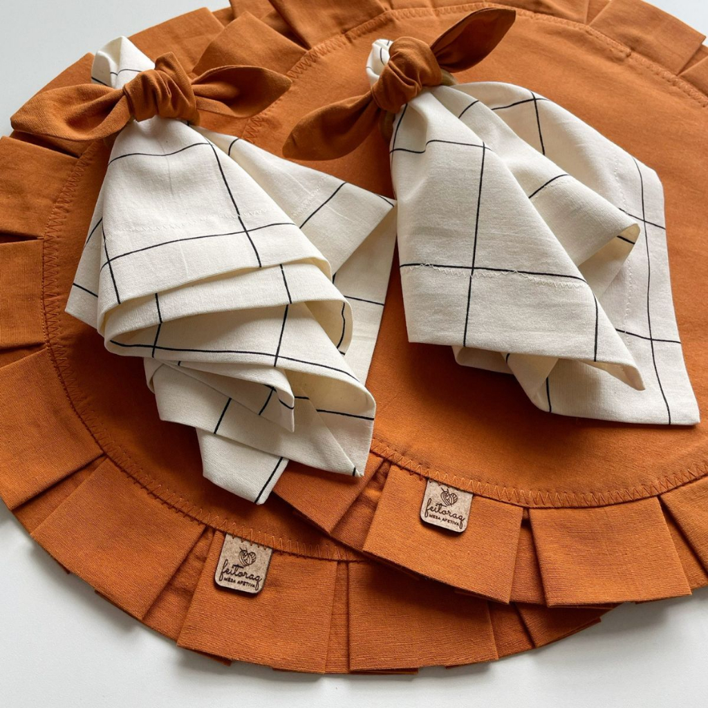 KIT JOGO AMERICANO DE MESA TERRACOTA COSTURA DECORADA COM 6 ITENS (2 LUGARES A MESA)
