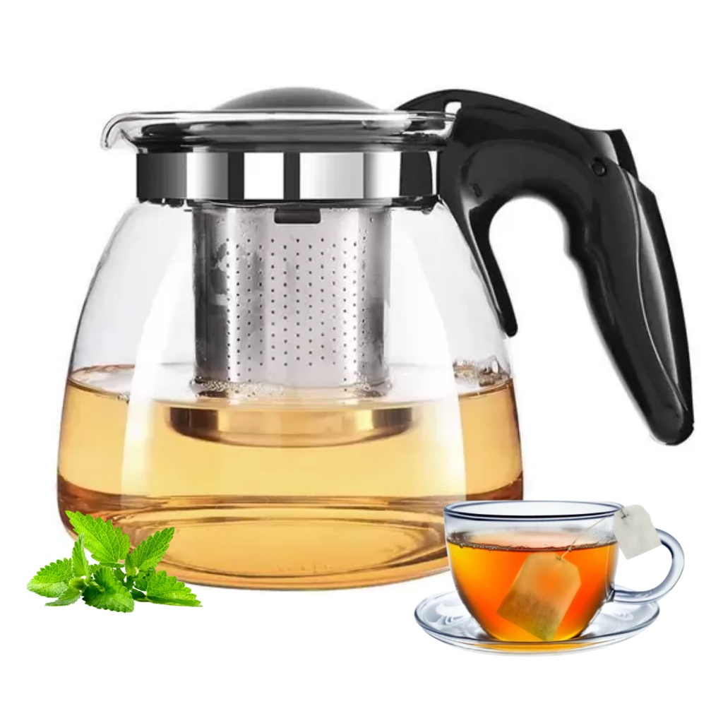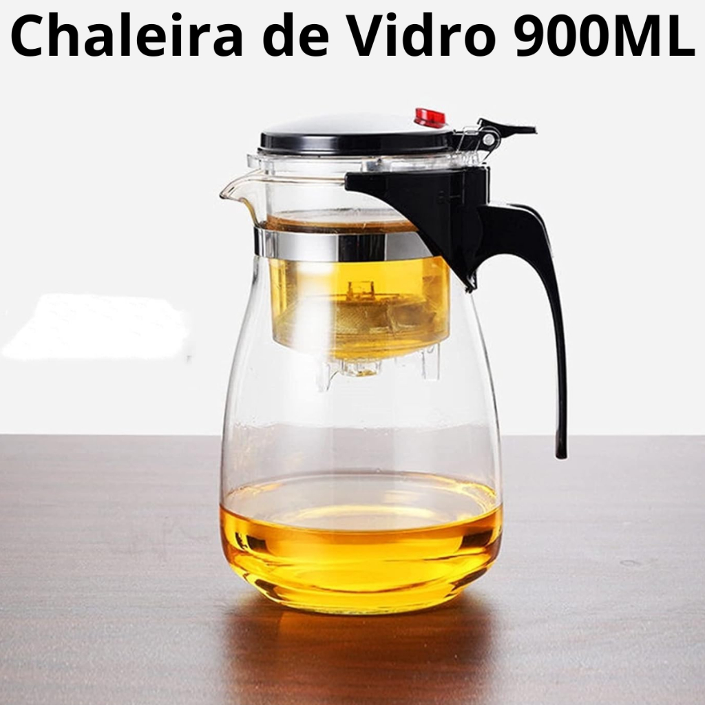 Chaleira De Vidro Bule Com Infusor Inox Para Chá e Café 1000ml