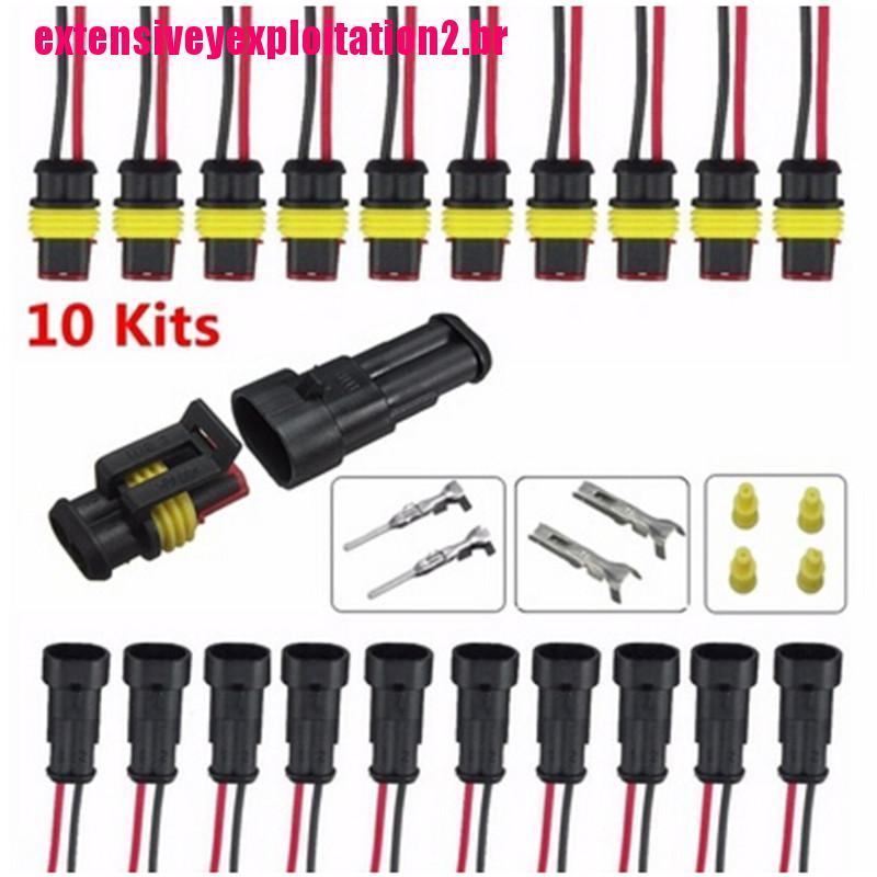 Ep2Br 10 Kits 2 Pinos Way Selado Impermeável Fio Conector Elétrico Plug Car Auto Conjuntos