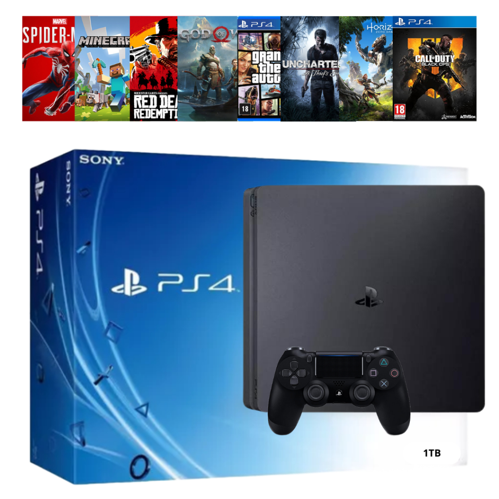Ps4 Video Game Slim Playstation 4 + Controles + 1 Jogo - Garantia - 500GB ou 1TB