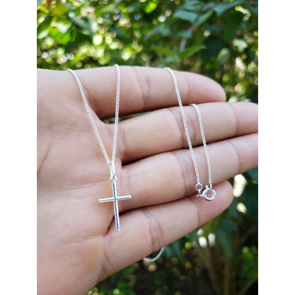 corrente de prata legítima 925 Grumet escama de peixe fina 60cm + cruz palito