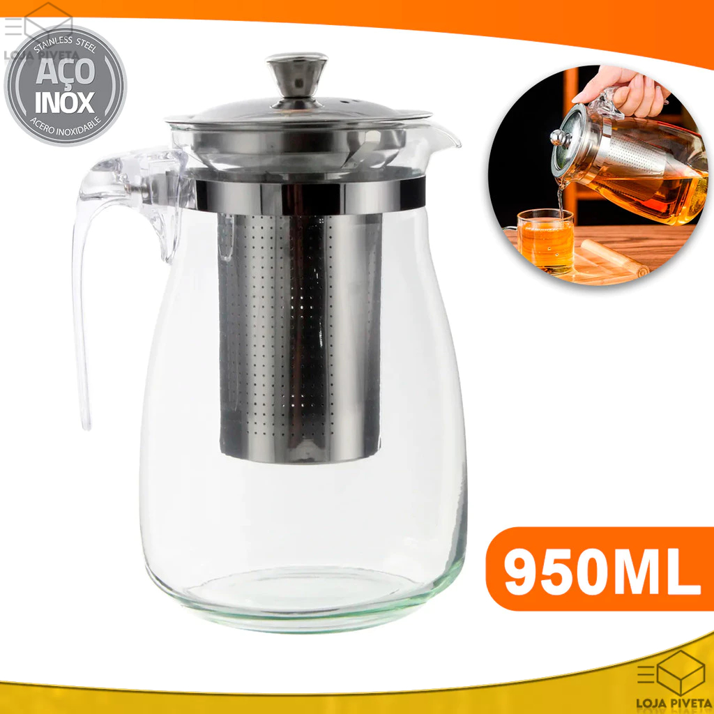 Chaleira De Vidro Bule Com Infusor Para Chá e Cafe 950ml Inox