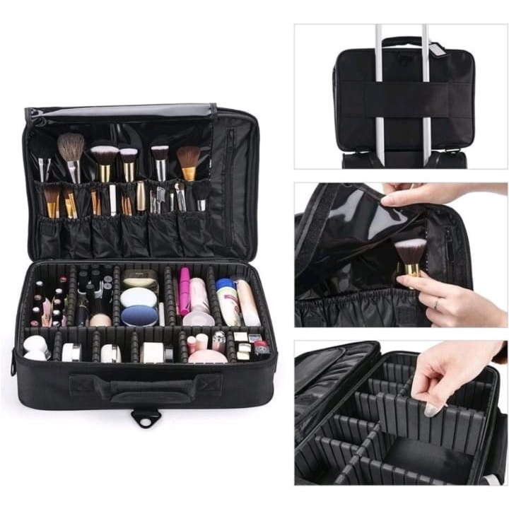 Maleta de Maquiagem Vazia Caixa Organizadora com Divisórias para Maquiagem Profissional Preta