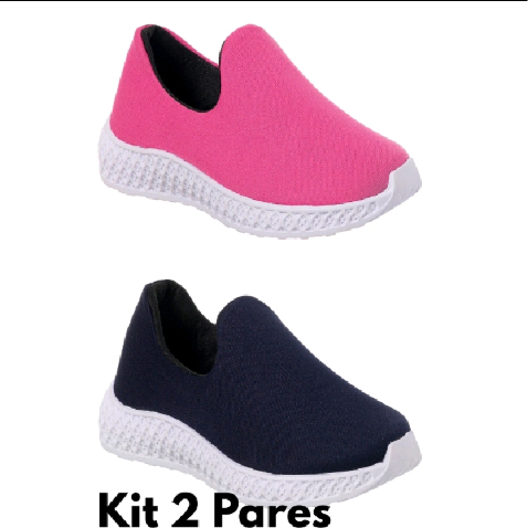 Kit 2 Pares Tênis Infantil Escolar Calce Facil Leve Confortável Macio Liso