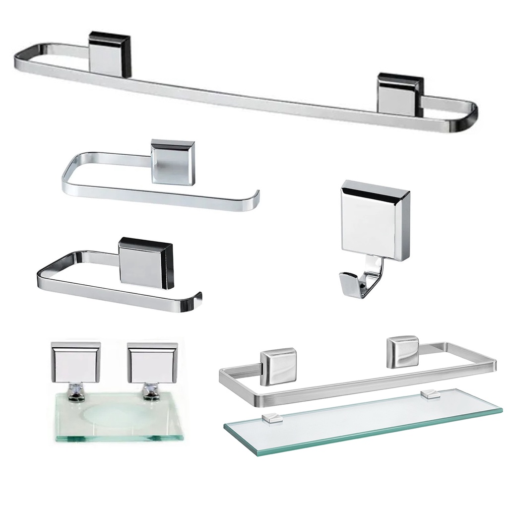 Kit De Acessórios Para Banheiro Linha Luxo Quadrado 5 Peças + Shampoo Reto Luxo Vidro Cod.12