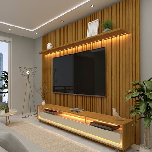 Adesivo Papel de Parede Autocolante Madeira Ripada 10m x 45cm e 5m x 45cm - Sala Quarto Escritório Hall Móveis
