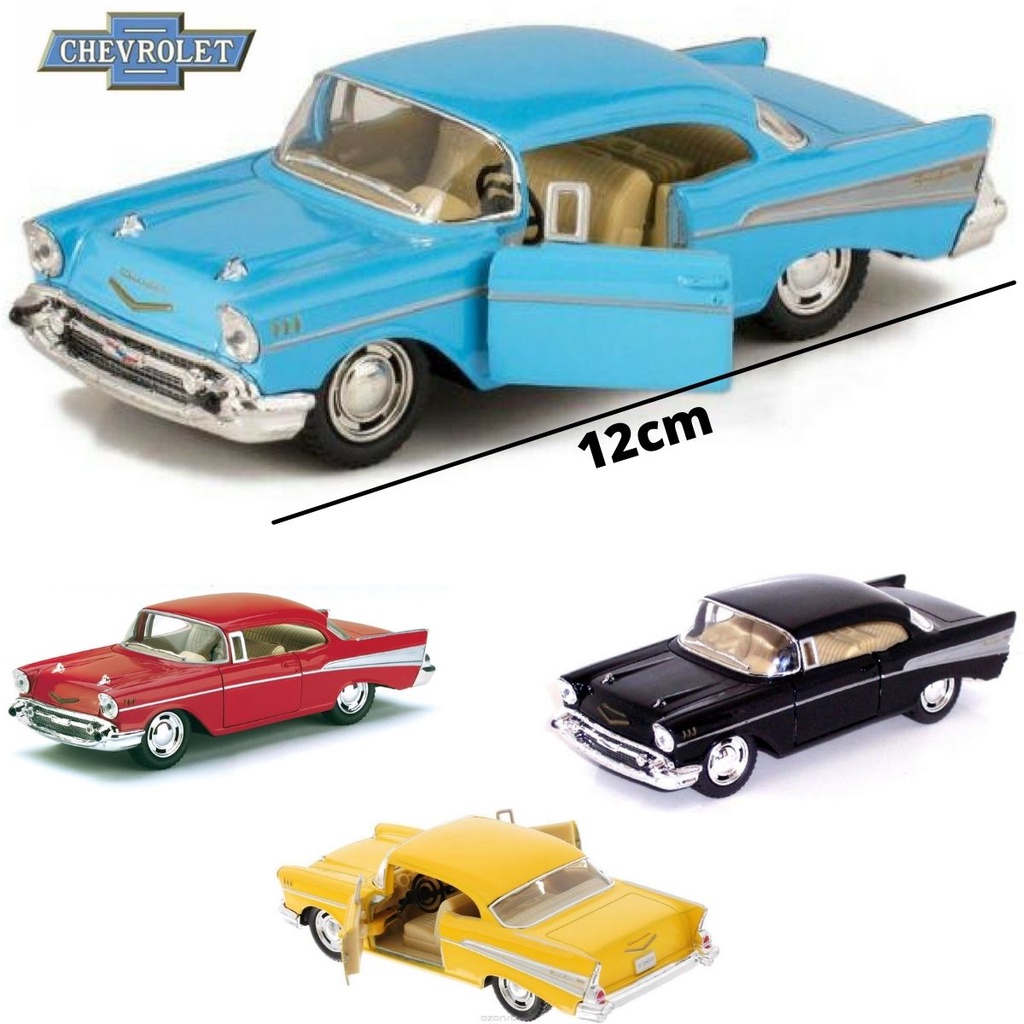 Miniatura Carrinho de Coleção Chevrolet Bel Air Ano 1957 Clássico Antigo Vintage Retro de Ferro 12cm KInsmart