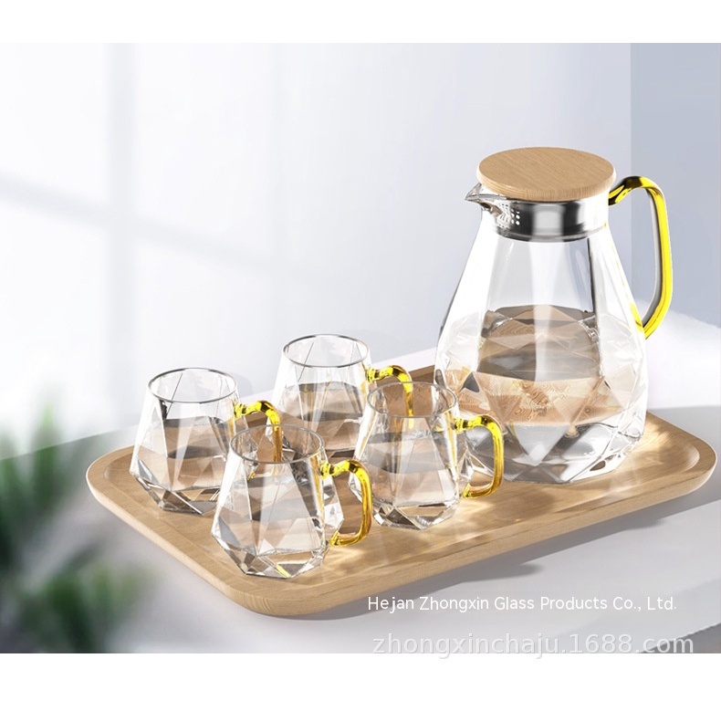 Garrafa De Água Fria De Diamante De Vidro De Grande Capacidade Conjunto De Copos Jarro De Suco