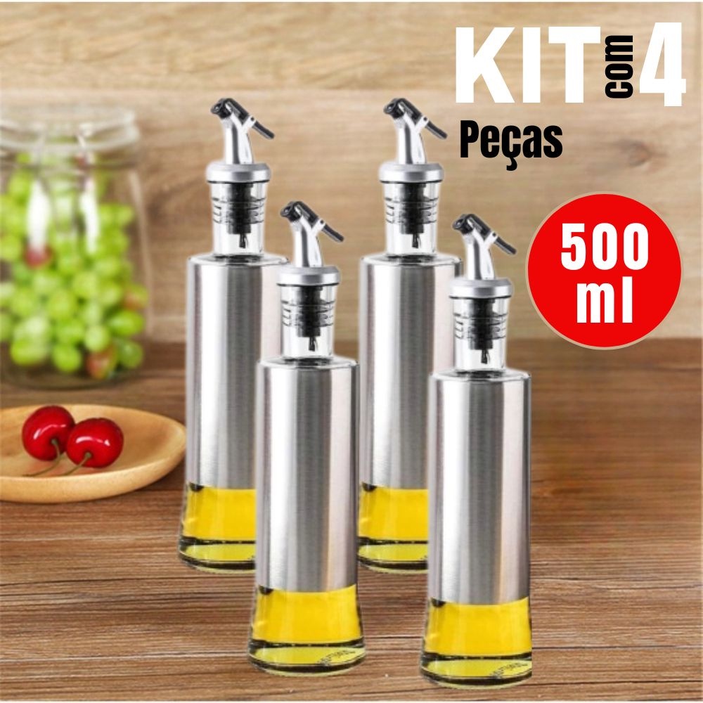 Kit Galheteiro 500ml Porta Azeite e Vinagre de Vidro Premium e Aço Inox com Dosador 500ml