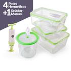 Jogo de 4 Potes Herméticos Vacuum e Selador a Vácuo Manual Moda do Chef