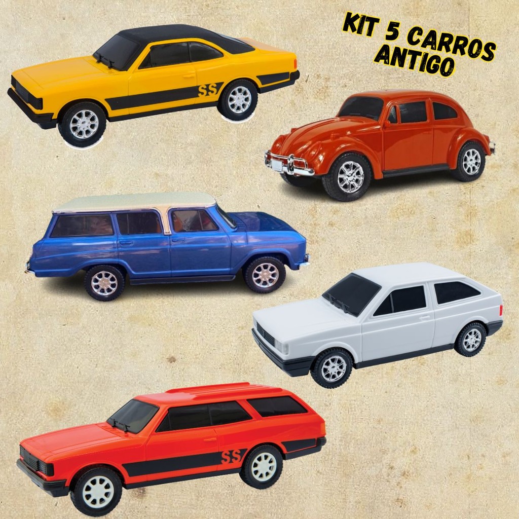 Kit 5x1 carro antigo brinquedo clássico menino coleção opala gol fusca caravan presente miniatura
